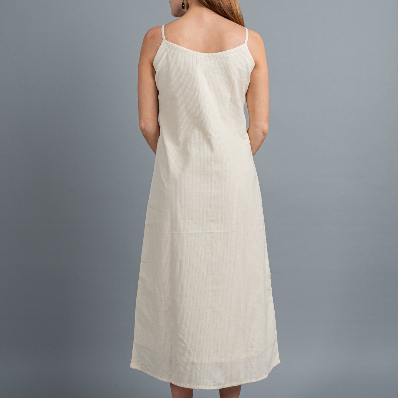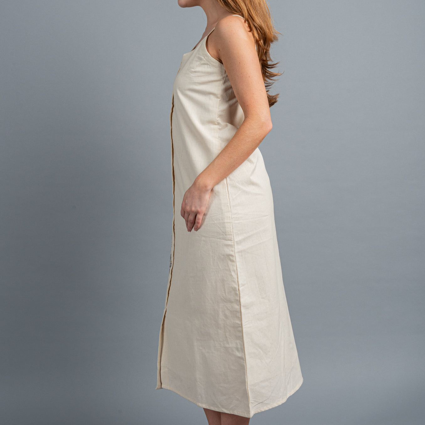 Adorned with simple but intricate 'Kantha' stitch embroidery on one side, you simply cannot go wrong with this comfortable cotton dress.
